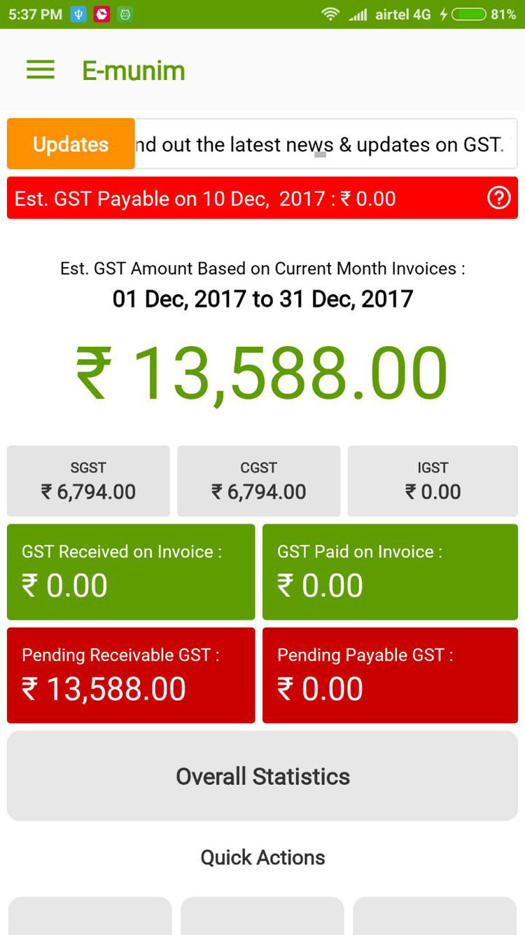 Get the updated GST calculation anytime once you do any transaction